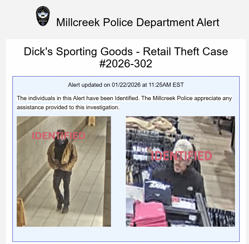 Millcreek Township, PA Police Department (58 sworn officers) identified two individuals wanted in connection with a Dick’s Sporting Goods retail theft case by leveraging tip411’s anonymous tipping tool.
